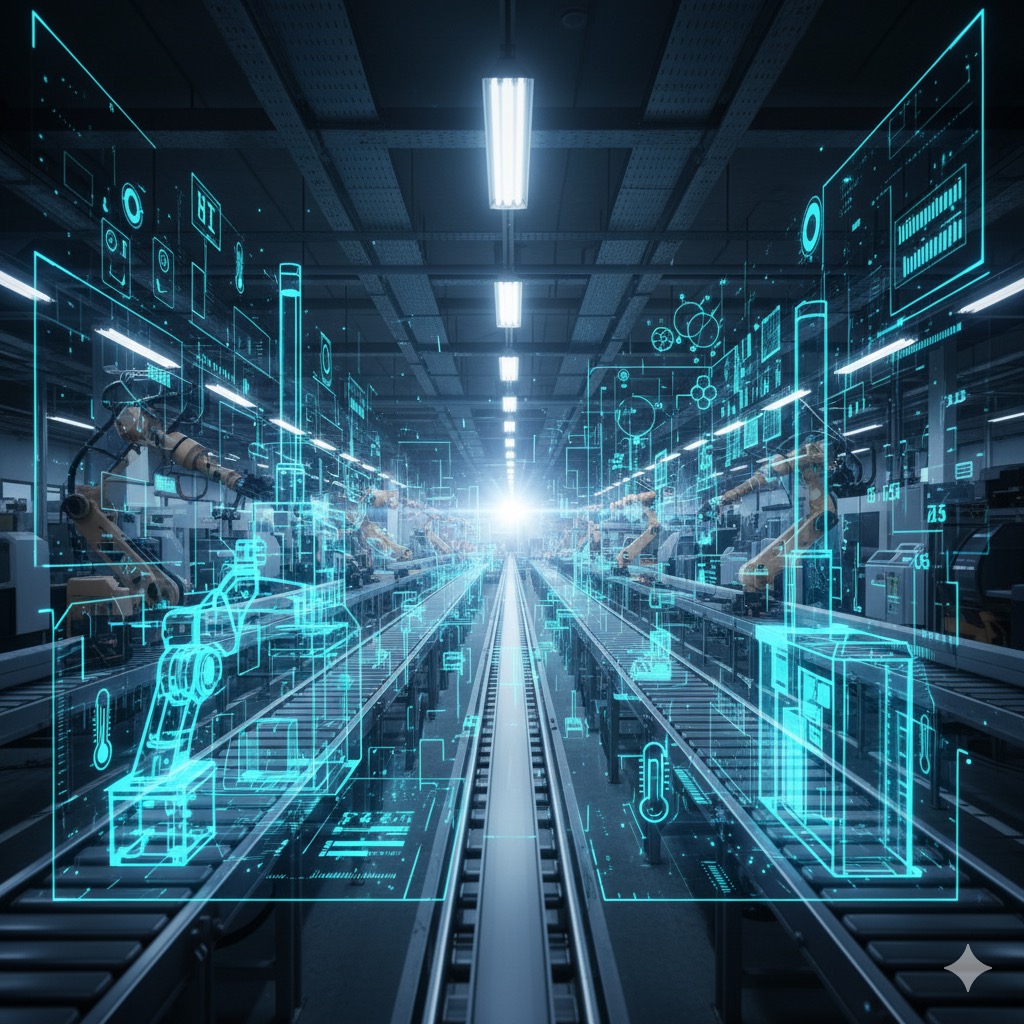 디지털 트윈은 제조업의 핵심인 **스마트 팩토리(Smart Factory)**에서 가장 폭넓게 활용됩니다. 공장 전체를 가상 공간에 복제한 후, 실제 설비에서 발생하는 데이터를 실시간으로 트윈에 반영합니다.